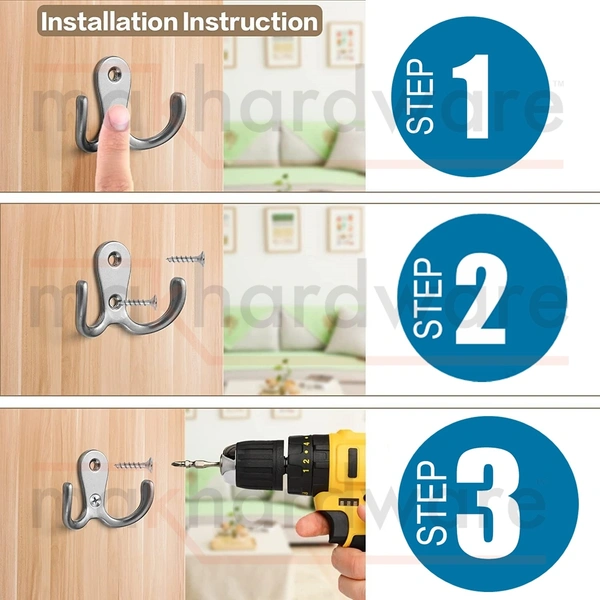 Rust free material stunning finish quarter tune advantage Hook wall stand solution made to fit anywhere design with suitable screws and plugs stunning and shimmering sure to win hearts of todays demanding customers for its design, durability and dashing performance. Exclusive Design and Finish Pin Strong Electroplating High Temperature Dip Coated hook stand Supports, ideal for kitchen, closets, living room, Bathroom ,bedroom and on doors
