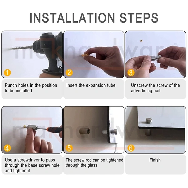- They are easy to install. Also can be used in glass, as a Standoff Pin for flush mounted or surface mounted glass attachments